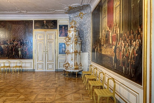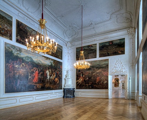 ehemaligen Wappenturm. Danach zweigt man nach links in den Gardessaal ab, dem Vorraum