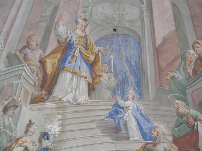 Figurenreihen den Blick in den Himmel, in dem Heilige und Engel den hl. Augustinus