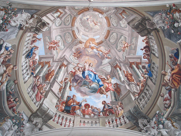 sehen in der Kuppel der Mariahilfkirche in Innsbruck (1689) und im Gewölbe der Stiftskirche